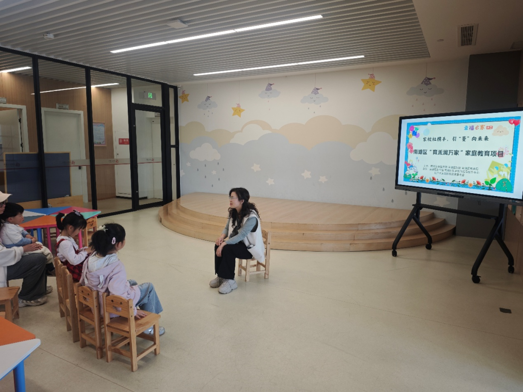 南湖区“育禾润万家”家庭教育项目,包括小型家长工作坊和家庭教育轻服务等。家长工作坊是通过活动体验、案例探讨、读书分享等形式指导家长更新家庭教育理念,改善家庭教育方法,提高家庭教育水平。家庭教育轻服务,主要是通过亲子共同参与活动,讲故事、玩游戏、做手工、学技巧、解疑惑等形式,促进家长与孩子共同成长。