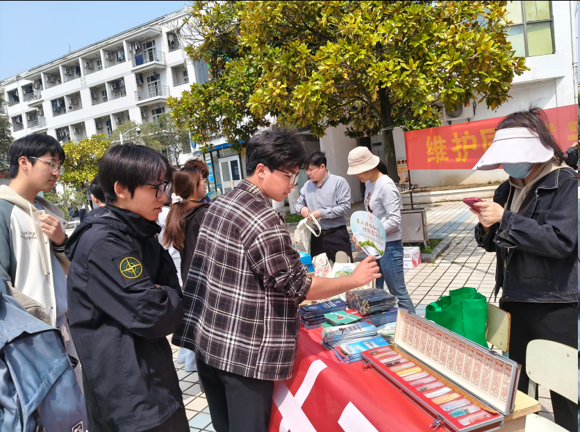 活动现场气氛热烈,广场宣传区吸引了众多师生驻足参与。工作人员通过摆放宣传展板、发放宣传手册等方式,向来往的师生普及国家安全相关法律法规,累计发放各类宣传物品六百余份,有效扩大了国家安全教育覆盖面,让师生在潜移默化中树立 “国家安全、人人有责”的观念。