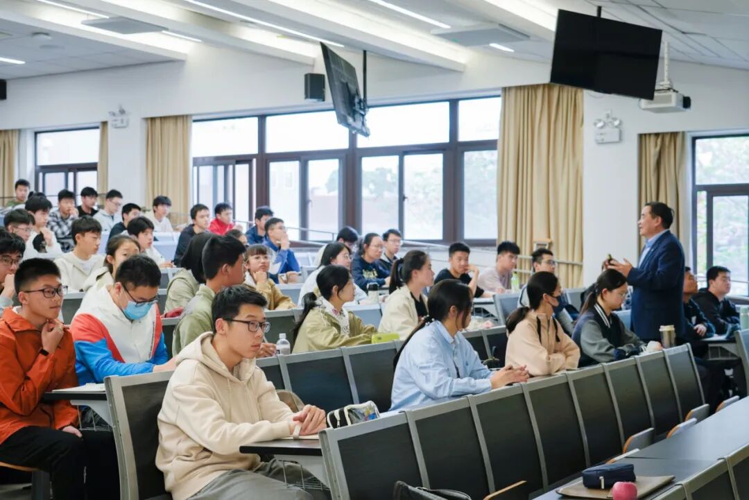 同一时间,在光华楼西辅楼。上午还在江湾校区组织“2026医工交叉学术论坛”的复旦大学生物医学工程与技术创新学院院长、加拿大工程院院士陈颉,下午便匆匆赶来给高中生们授课。
