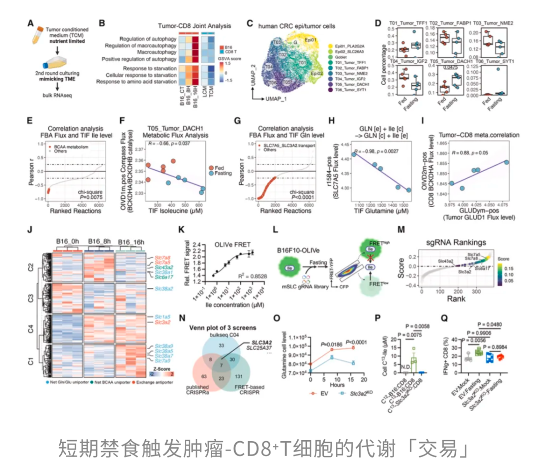 简而言之,16小时左右的短期禁食,迫使肿瘤细胞为了获取生存必需的谷氨酰胺,不得不进行一种「代谢交易」,将宝贵的lle「拱手相让」给周围的CD8+T细胞。肿瘤细胞原本是想“自救”,结果却在无意中给免疫细胞递了「燃料」。