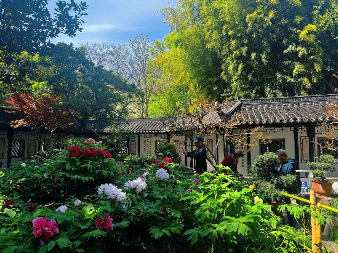 春雨润物,醉白池公园的百年牡丹如约盛放。