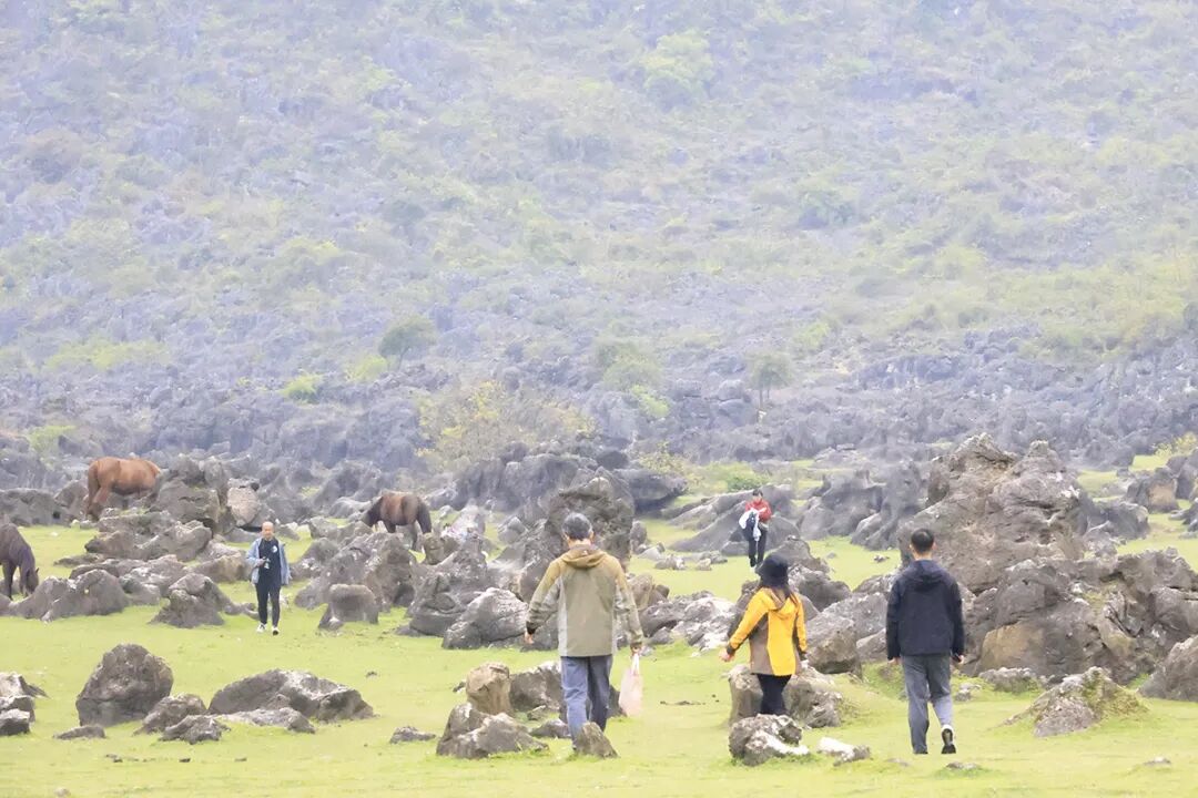 走进景区,亿万年风化侵蚀形成的龙鳞石林连绵起伏,墨黑色岩石与嫩绿草坪、遍野山花相映成趣,徒步小径穿梭其间,游客们或轻徒步探险、或驻足拍照打卡,沉浸式感受喀斯特地貌的原始野趣与春日生机。露营区内,帐篷、天幕错落排布于草坪之上,围炉煮茶的清香、户外烧烤的烟火气与游客的欢声笑语交织,勾勒出一幅鲜活的春日休闲画卷。
