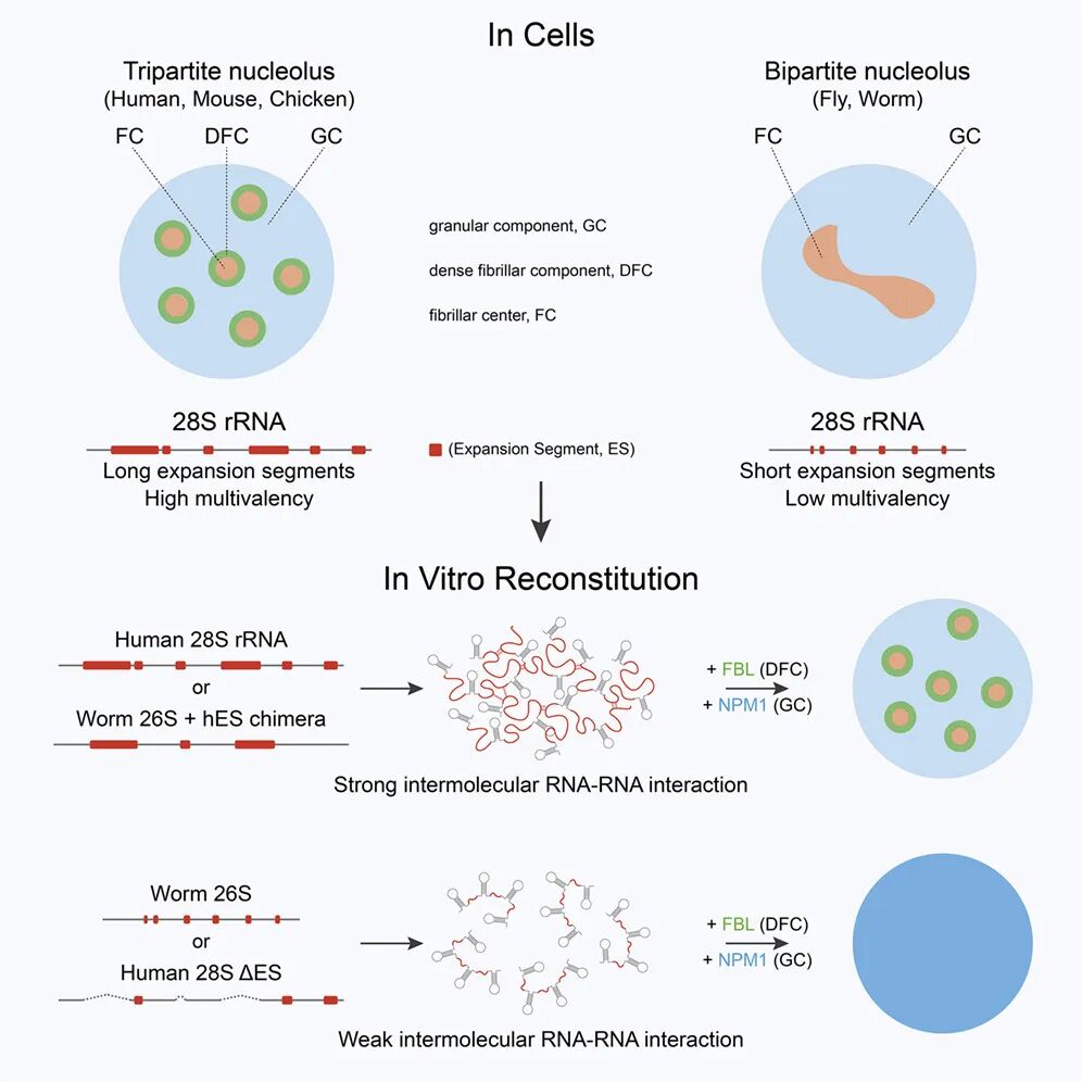 Mol Cell | 马为锐/项晟祺/侯中怀团队合作揭示28S rRNA扩展片段在核仁多层结构形成中的关键作用
