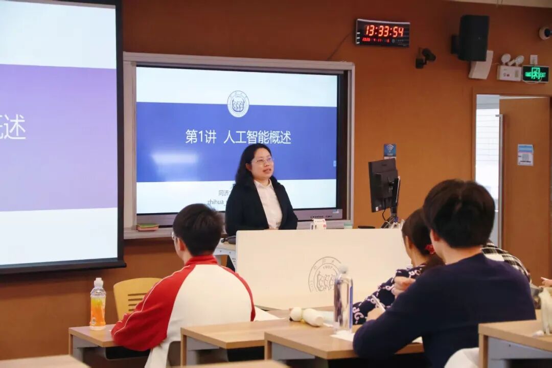 计算机科学与技术学院卫志华教授带来的《人工智能导论》课程,以热点科普、实操演练和理论知识相结合的课堂形式,为高中生搭建了一个接触前沿科学、展示创新成果的平台。课程刚结束,就有学生带着问题围着她。看到同学们对人工智能应用有浓厚的兴趣,卫老师十分高兴,她说,“给高中生上课颇具挑战,他们没有相关专业知识基础。在课程设计上,我会多花心思,引导同学们了解前沿进展,去适应人工智能时代的浪潮。我还会布置一些小作业,让同学们尝试使用AI工具来创作自己的作品,锻炼独立思考能力。”