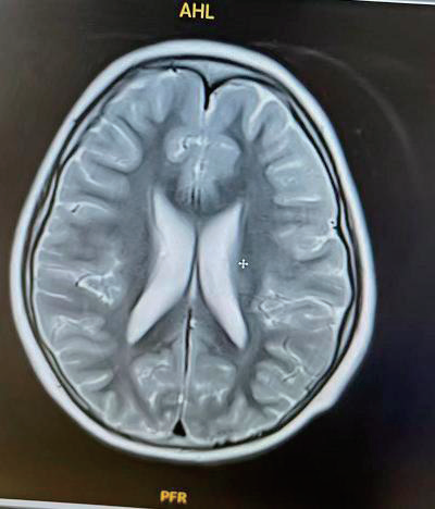 (头颅核磁双侧脑室扩大表现 图片来源:White-Sutton综合征临床表型扩展及治疗尝试:病例系列报告. 临床儿科杂志, 44(1), 38-43.)