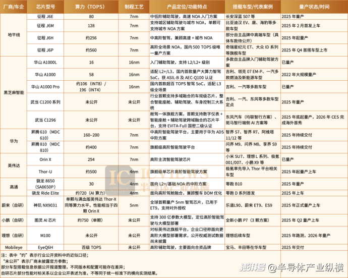 2025年,智驾芯片在算力、性价比、量产等维度实现显著突破。随着智能驾驶的普及,智能驾驶芯片市场上的玩家数量开始收敛。第三方智驾芯片格局稳固的同时,三大造车新势力不约而同地选择了造芯模式。