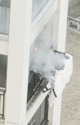 2026年3月12日,江西九江市,一小区住户晾晒在阳台的棉被疑似被楼上扔下的烟头引燃,万幸现场无人员伤亡。