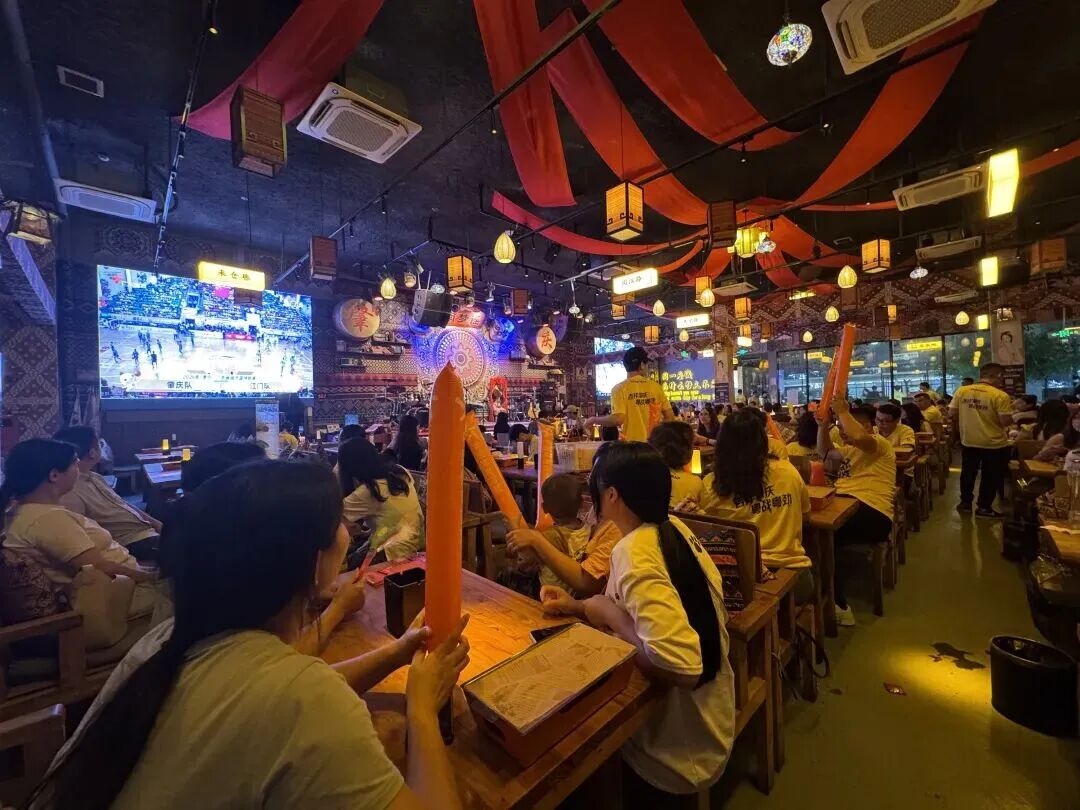 △肇庆高新区市民在小酒馆内观看粤BA直播,为肇庆队加油助威。图源 肇庆文旅
