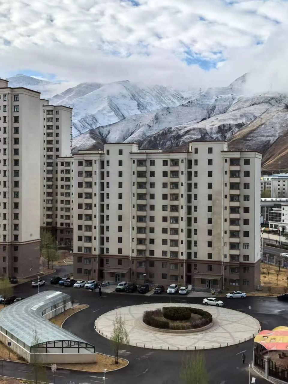 平日里阳光明媚的“日光城”,此刻呈现出一派别样的春日风光。红墙白雪相映成趣,雪山与城市相融,勾勒出独属于雪域高原的纯净之美。