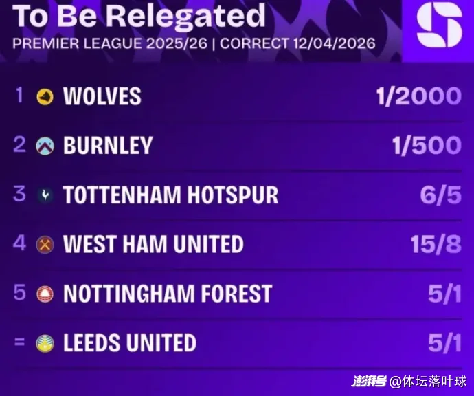 赛后,赔率机构已经将热刺的降级赔率开到了2.20,甚至低于西汉姆联。这不是看不起热刺,这是基于现实的冷酷计算。