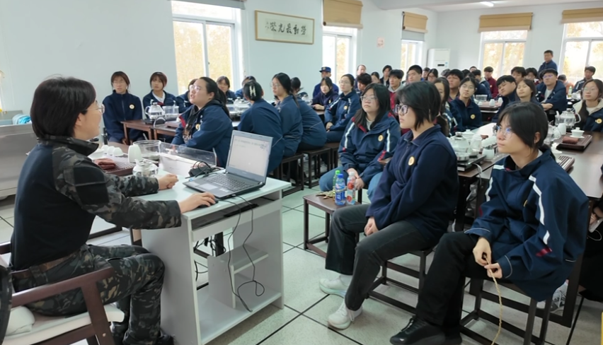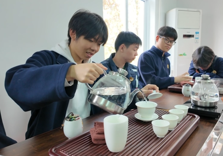 另一边,茶文化体验课茶香袅袅,韵味悠长。授课老师以春茶为载体,深入浅出地讲解茶文化的历史起源与发展脉络,同时带领学生静心学习茶道礼仪,并完成温具、投茶、醒茶、出汤等全流程茶艺实践,沉浸式感受泡茶、品茶的雅致。