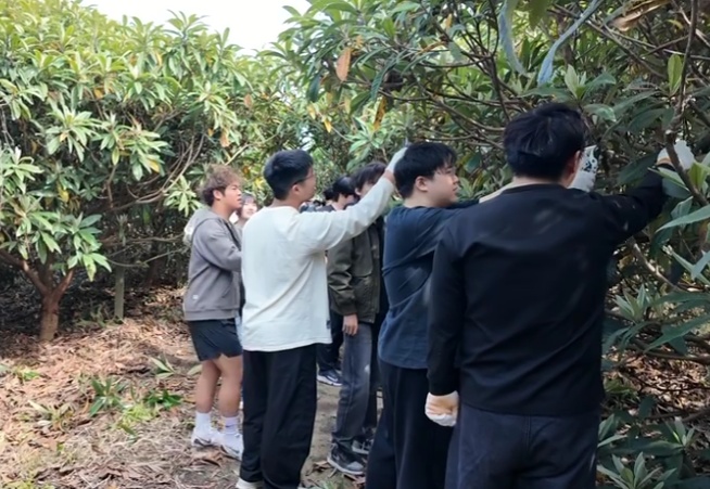 活动期间,学生们还走进瑞华果园、新村稻米文化中心等地,解锁现代农业的科学奥秘。在瑞华果园水果种植区,专业老师围绕草莓品种、生长特点、枇杷树日常管护等农业科普知识展开生动讲解。随后,学子们走进种植区域,亲手参与草莓老叶采摘、枇杷树枝修剪等农事活动。