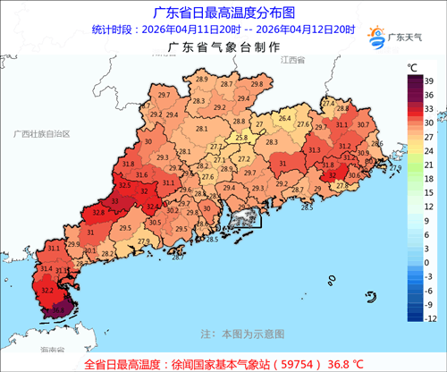 天气概述:12日白天到13日早晨,韶关、清远、肇庆北部出现了(雷)阵雨,其余地区局部有阵雨,部分市县早晨出现了轻雾,雷州半岛还出现了35℃以上高温。