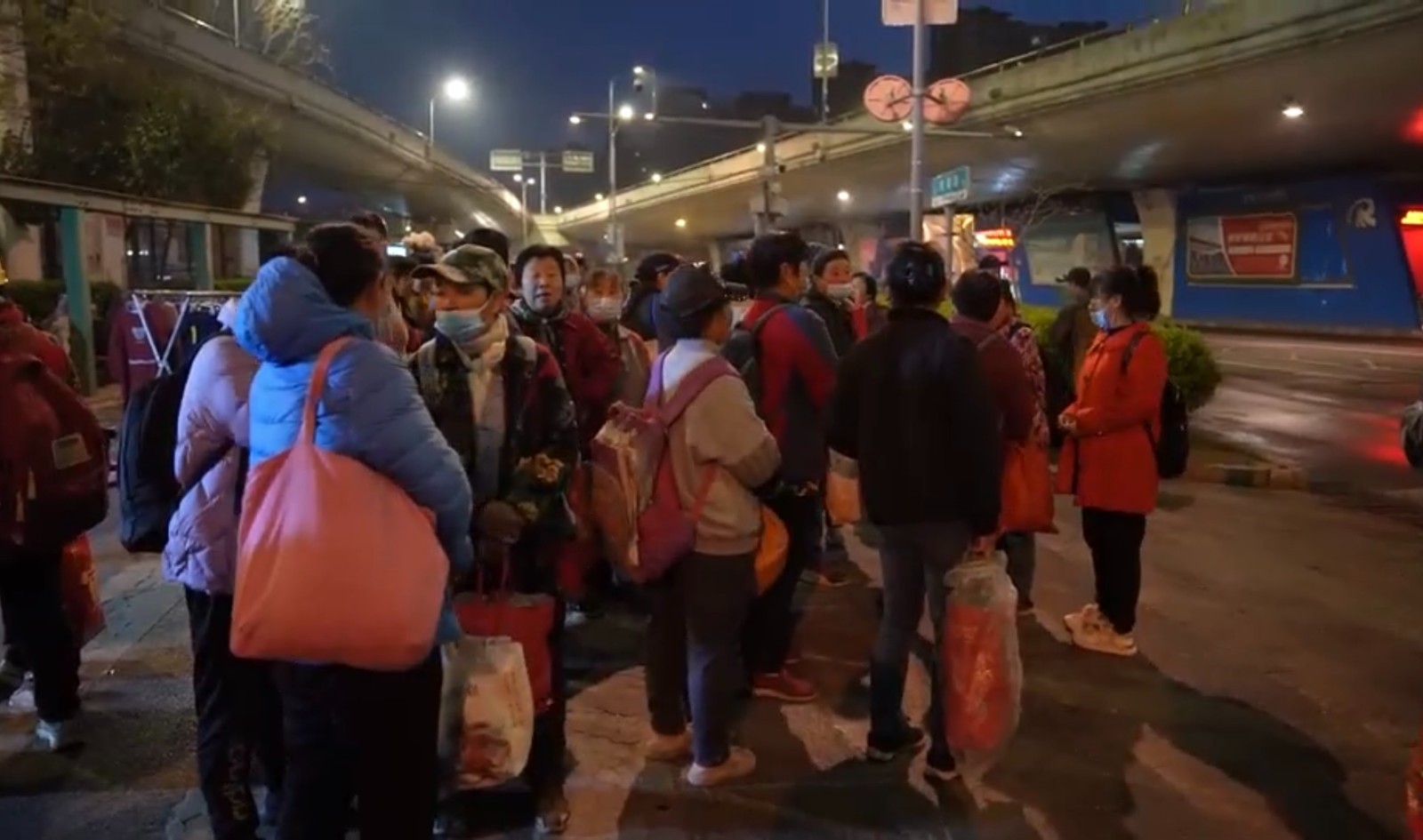 这是一个自发形成的零工集散地。来这里找活儿的,绝大多数是超过了法定退休年龄的超龄打工人。他们天不亮就守在这里,只为顺利上工,赚一点工钱。
