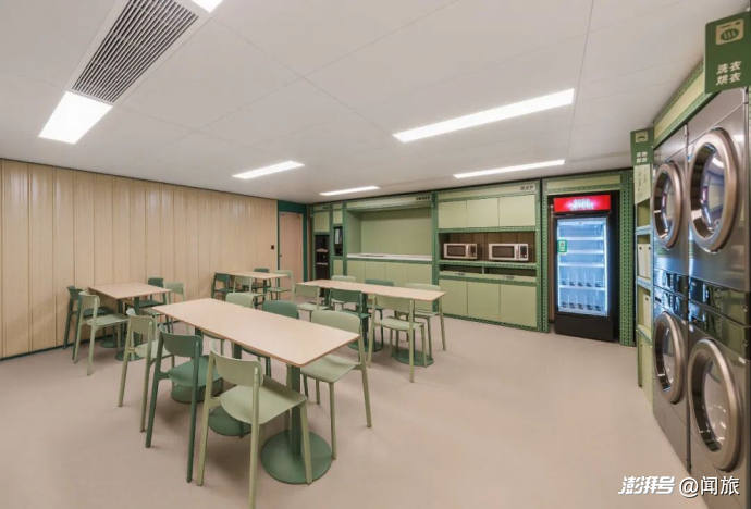 行李寄存、自助洗衣、自助饮水、自助充电、自助售卖、微波炉加热……十个功能,全部塞进公区,每一寸面积都在产生价值。