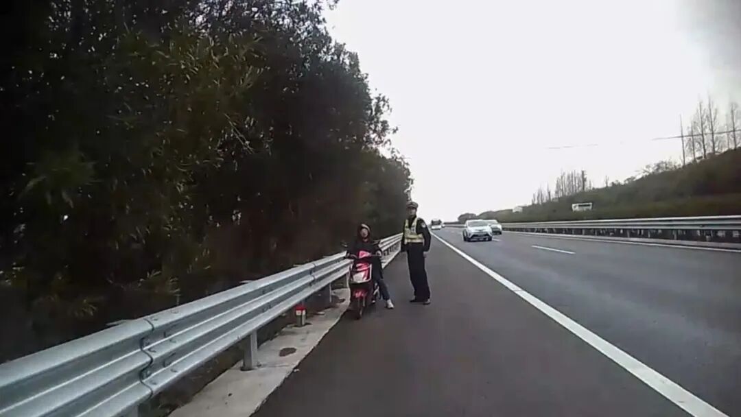 民警根据该男子的行径路线,很快在靠近张堰出口的位置发现了他,随即利用喊话器、鸣警笛等方式示意电动自行车驾驶员停车。