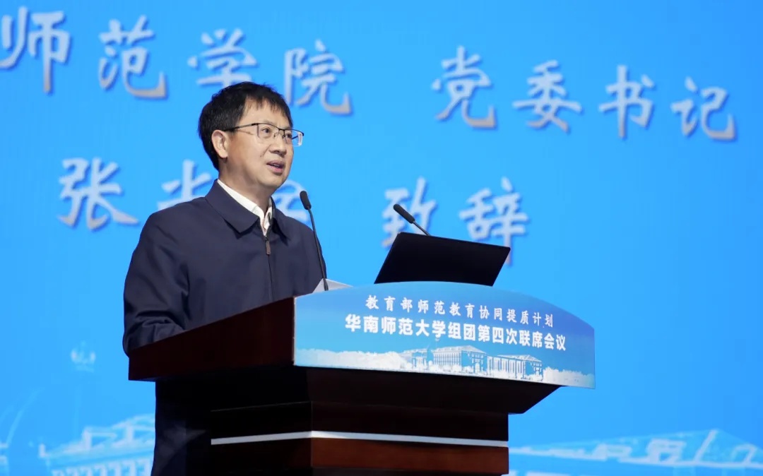河南省教育厅副厅长张传广、商丘市人民政府副市长王爱林、广东省教育厅二级巡视员方树生、华南师范大学党委书记王恒胤分别致辞。组团7所高校相关领导分别作了工作汇报。会议还联合发起了“华南师范大学组团教师教育共同体倡议”。