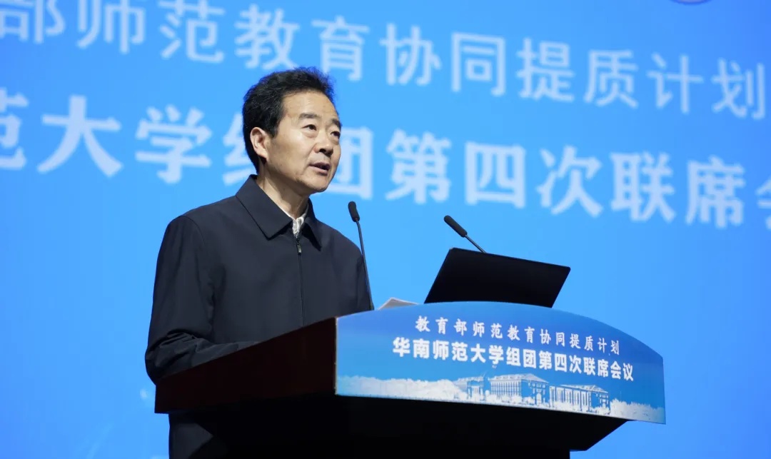 4月8日,教育部师范教育协同提质计划华南师范大学组团以“共建教师教育共同体共促职前职后一体化”为主题,在商丘师范学院召开第四次联席会议。教育部教师工作司、河南省教育厅、广东省教育厅、山西省教育厅、江苏省教育厅和华南师范大学、河南师范大学、江苏师范大学、山西师范大学、忻州师范学院、周口师范学院、商丘师范学院组团高校有关领导、专家、嘉宾以及商丘市人民政府有关领导出席会议。商丘师范学院相关负责同志、师生代表参加会议。会议由商丘师范学院校长陈向炜主持。