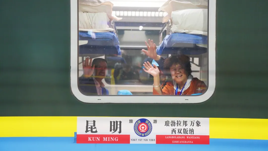 近日,188名旅客乘坐Y26/7次“象往号”中老跨境旅游“银发专列”,开启为期8天7夜的跨国旅程,这是今年以来中国铁路昆明局集团有限公司开行的第五趟普惠型中老跨境旅游专列。