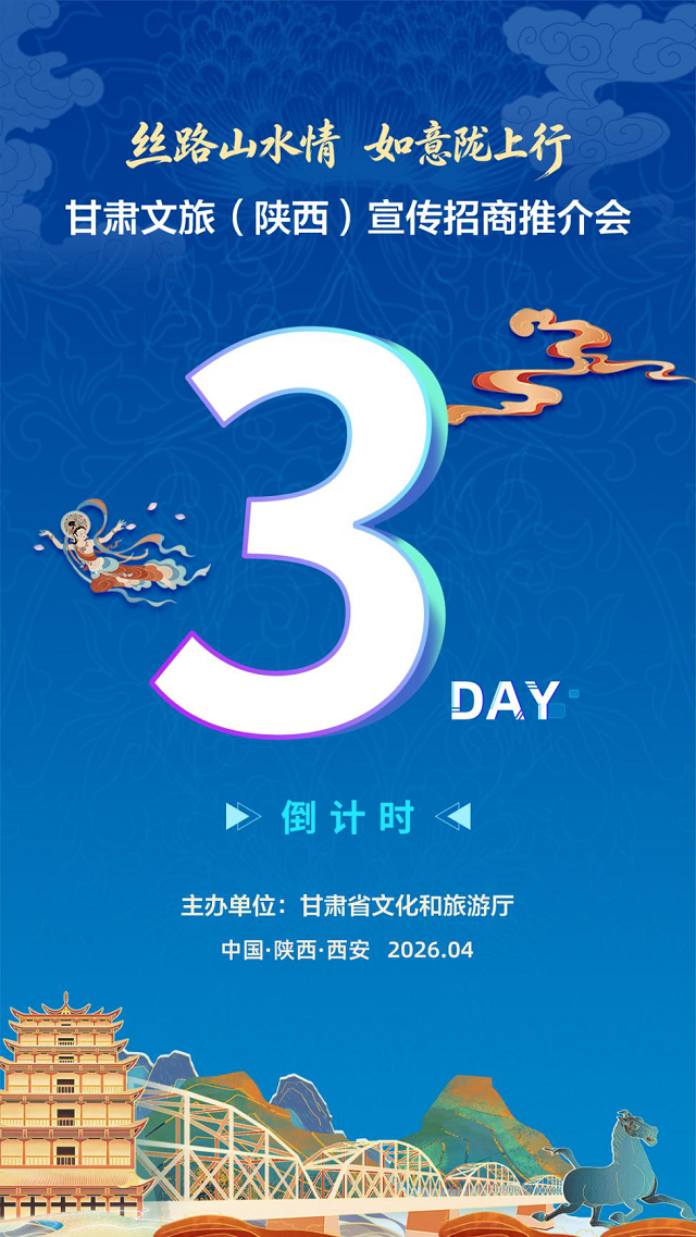 从祁连雪峰到秦岭之北,从丝路古道到长安街巷,甘陕两地地缘相近、文脉相通、客源相连、市场相融。倒计时3天,这场丝路共鸣的文旅盛宴已蓄势待发。甘肃将以最饱满的姿态、最优质的资源、最真诚的合作,向陕西各界发出盛情邀约,共赴丝路之约,共拓文旅新局,让“交响丝路·如意甘肃”在三秦大地绽放更加绚丽的光彩。