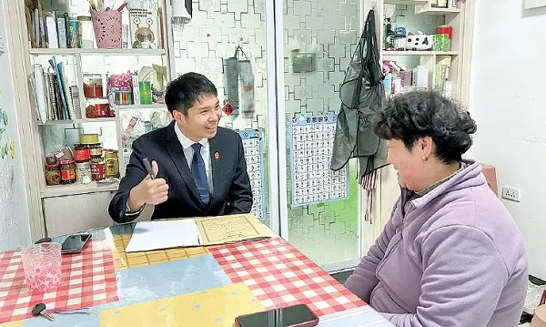 安徽省泗县人民法院执行员卢百逊上门听取申请执行人的意见。汤萍 摄