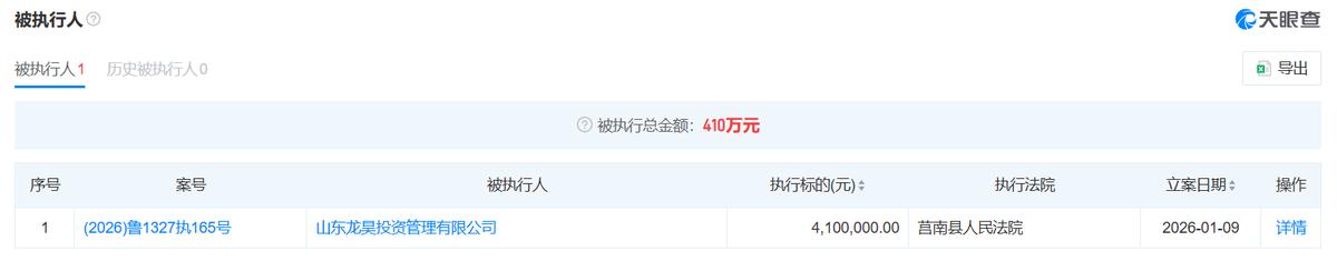 而张倩实际控制的另一家企业山东龙昊投资管理有限公司也已成为被执行人。今年1月9日,该公司被莒南县人民法院立案执行,执行标的410万元。