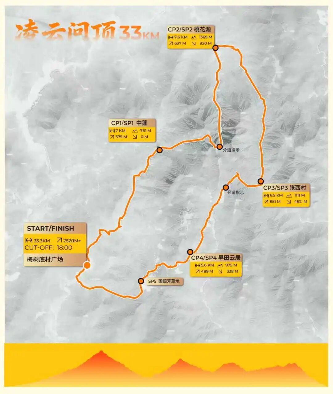 全程约33.3km,海拔爬升2532m,关门时间11小时,ITRA积分2分。