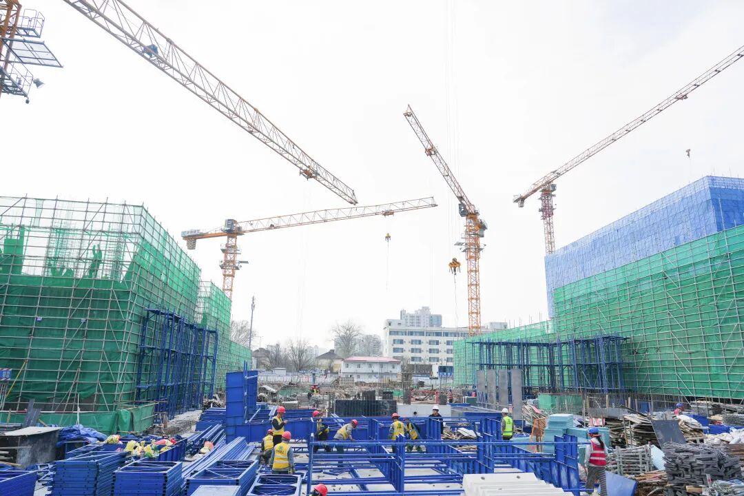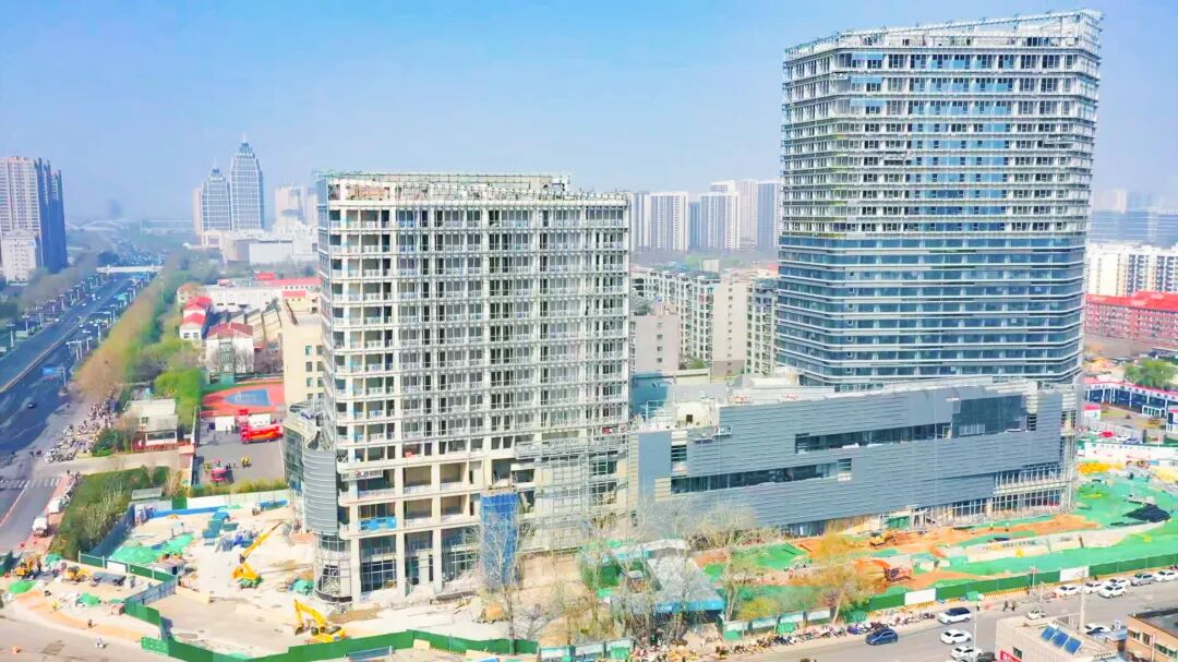 项目位于经十路与张庄路交叉口,紧邻2号线、4号线换乘站腊山站,总建筑面积约10万平方米,涵盖商业、办公、停车等多种业态。建设过程中实行每日调度、每周复盘的管理机制,运用BIM技术精准优化施工流程,并落实24小时安全巡查,确保工程进度、质量与安全可控。在现场可以看到,项目核心功能区已初具雏形,建成后将有效激活西部城区发展活力。