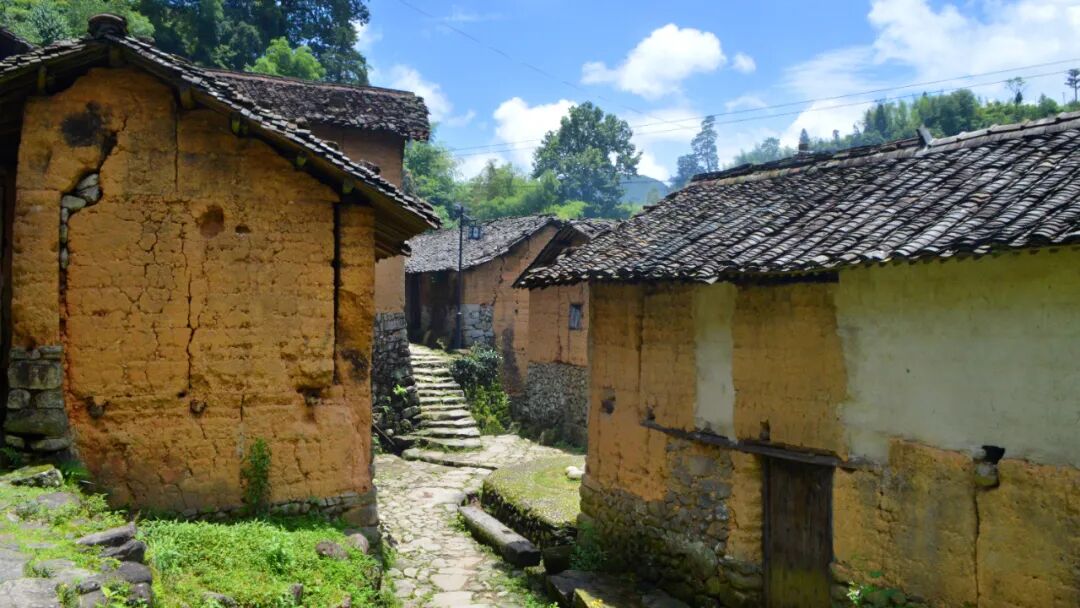 这是一个崖居式古村落,古村坐落在悬崖之上,被大片的竹林和古树环绕,民居建筑若隐若现,高低错落的古村更具特色。
