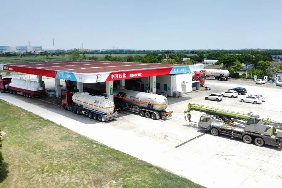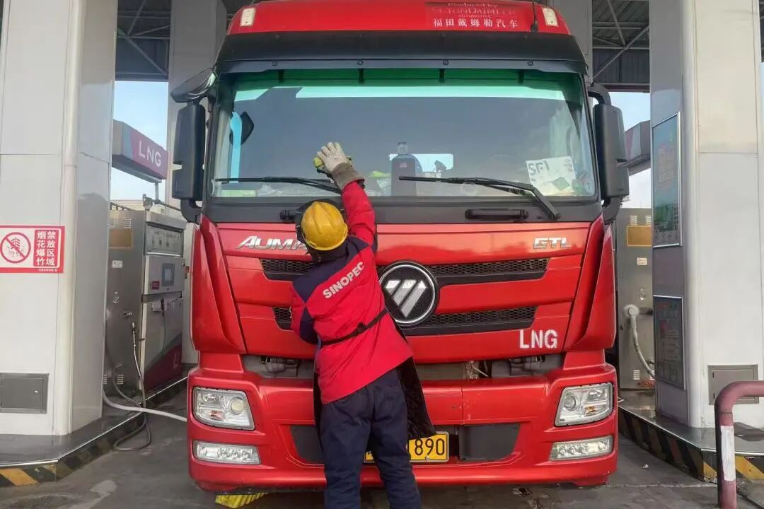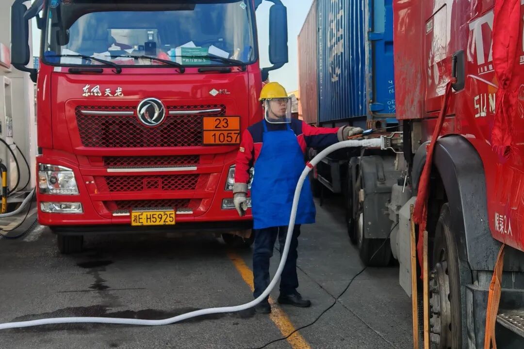 浙江宁波石油北仑保税西区加能站紧邻宁波舟山港,是服务“绿色港口”的LNG主力站。该站创新实施“一机双枪”改造,配备长短枪各一把,大幅提高加气效率。站内常年提供免费热水,让赶路的司机们歇歇脚、暖暖身。