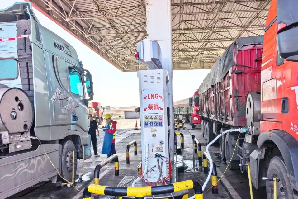 内蒙古巴彦淖尔石油口岸加能站服务中蒙边境口岸货运,创新推出“补给优化+人文关怀”双服务模式,建立LNG错峰卸液机制与双枪同步加注,单次加注时间缩短30%。该站还为物流车队建立“一车一档”用能档案,提供安全培训。站内的“司机之家”提供免费热水、应急药箱等服务,以务实举措护航北疆绿色货运通道。