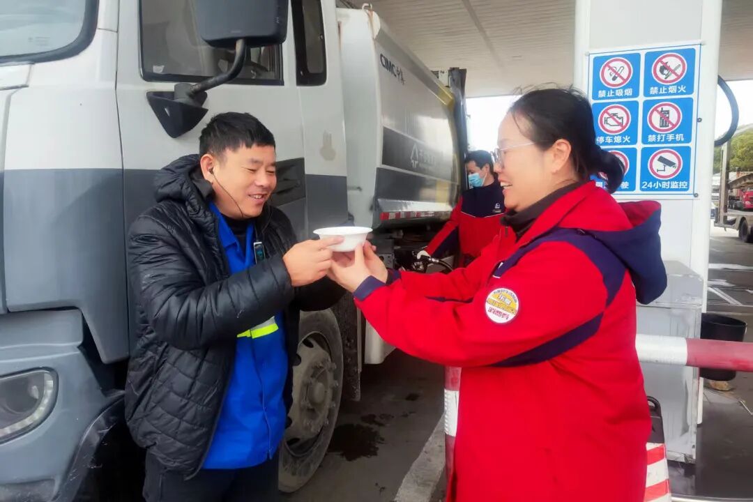上海沪东石油临港一站每逢节日必有“专属惊喜”,元宵节送汤圆、春节送福字……让奔波的路途也有家的仪式感;员工还主动为司机义务理发,切实解决长途出行“头等大事”。站内常年提供休息歇脚、热水补给、应急便民等服务,让每一位进站的司机都能感受到温暖。