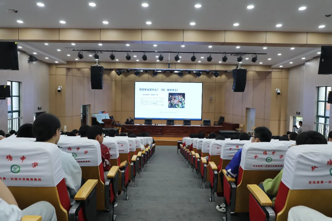 活动伊始,校报告厅内,法官以“国家安全,从我做起”为题,为现场300余名初中生带来2026年全民国家安全教育日专题讲座。讲座围绕“什么是国家安全教育日”“国家安全是什么”“我们身边的安全隐患”“初中生如何守护国家安全”等内容展开,并结合“预防校园霸凌”“未成年人保护法”两个专题进行深入讲解。