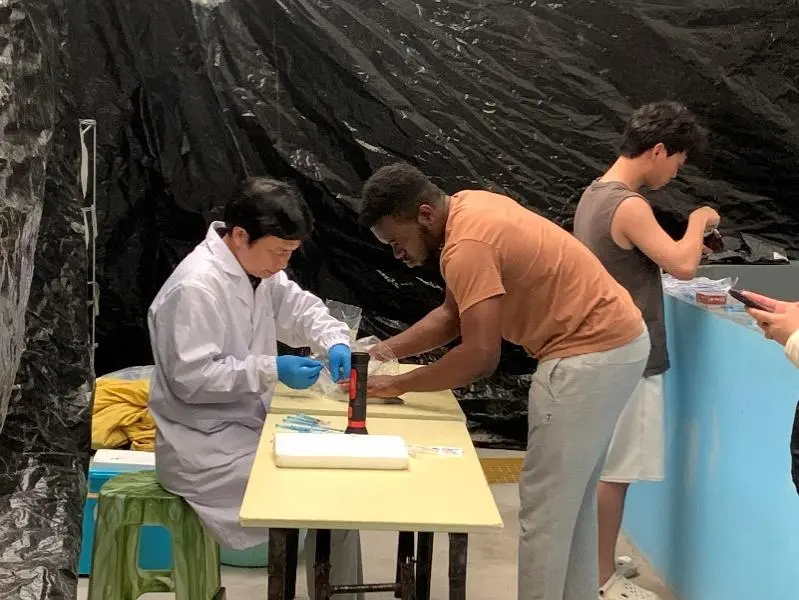 团队依托上海海洋大学“淞航号”科考平台,连续多年沿鳗鲡洄游路线开展深海调查与样品采集,累计获得野生柳叶鳗状幼体样品42尾,并围绕其肠道菌群、天然食物组成等开展研究,为解析鳗鲡仔鱼天然食性及优化人工开口饵料提供了重要基础数据。
