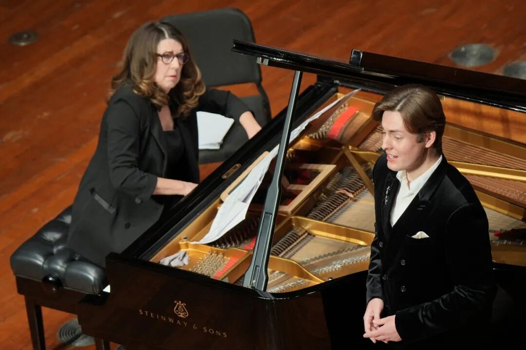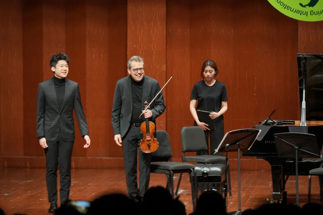 去年首届上音国际音乐家比赛亚军谢凌飞,今年受邀亮相上海之春舞台。在“大师与新秀”音乐会上,他与德国Phaeton钢琴三重奏同台,先后与小提琴家合作勃拉姆斯的小提琴小品,与大提琴家合作贝多芬变奏曲,又和钢琴家四手联弹勃拉姆斯《匈牙利狂想曲》,展现出全面的音乐家素养。