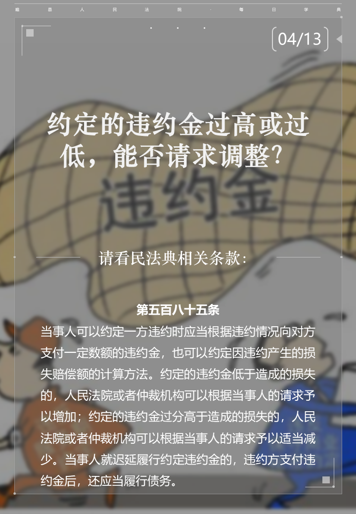原标题:《每日学“典” | 违约责任 | 约定的违约金过高或过低,能否请求调整?》
