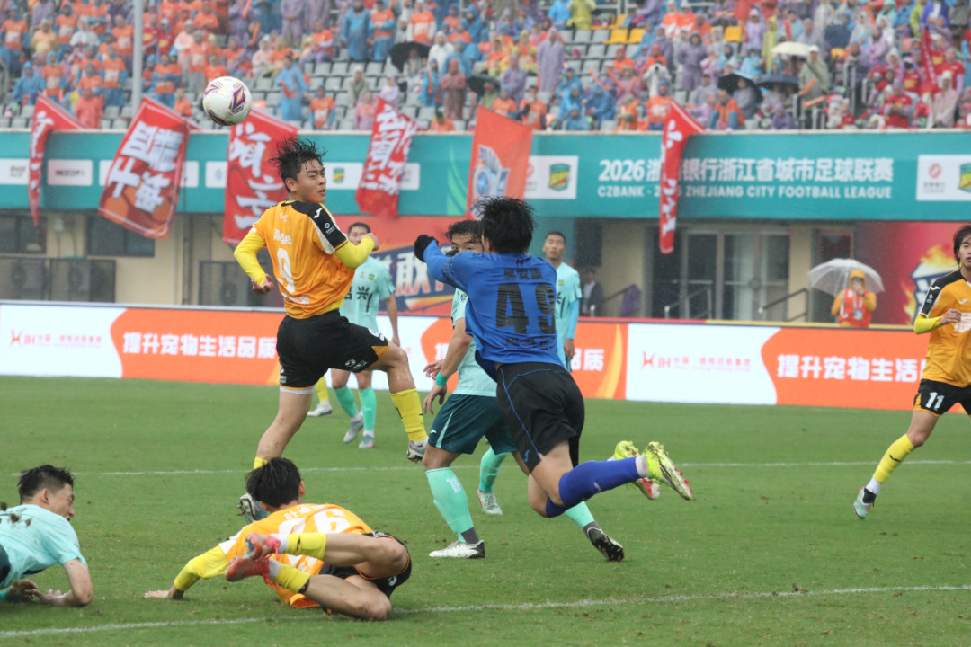 4月12日下午,温州体育中心体育场迎来雨战,在一万余名球迷助威下,主场作战的温州队2:0击败绍兴队,拿下两连胜,领跑积分榜。