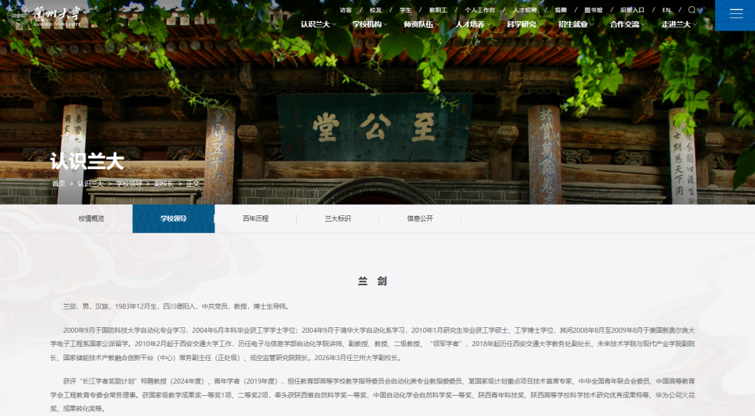近日,兰州大学官网“学校领导”页面变更显示,兰剑已于3月起任兰州大学副校长。此前他长期在西安交通大学任职,履新前是西安交通大学低空监管研究院院长。