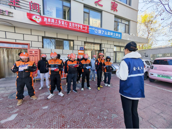 4月9日,金凤区贺兰山中路街道海珀兰轩社区妇联组织执委走进饿了么蓝骑士驿站,化身“救护员”与“反诈卫士”,为新就业群体送上了一场干货满满的生命安全与财产安全“双保险”培训活动。