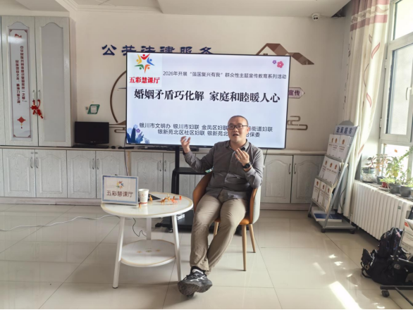 4月8日,银川市文明办、银川市妇联、金凤区妇联、上海西路街道妇联、银新苑北区社区妇联联合婚姻家庭心理讲师朱老师在“五彩慧课厅”的直播专题课堂,开展以“婚姻矛盾巧化解 家庭和睦暖人心”为主题的心理健康讲座,通过线上直播与线下宣讲相结合的方式,为辖区居民送上专业的心理辅导与婚姻经营指南。