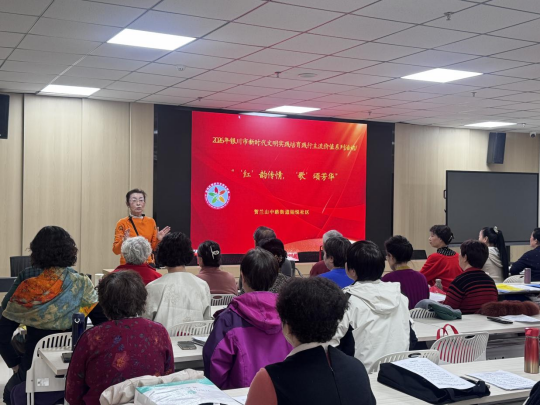 4月8日,金凤区贺兰山中路街道铂悦社区妇联“她力量”志愿服务队举办了一场以‘红’韵传情 ‘歌’颂芳华”主题学唱红歌活动,志愿服务队骨干成员、社区文艺积极分子陆桂颖阿姨担任领学,吸引了服务队成员及辖区内众多热爱唱歌的妇女姐妹热情参与。