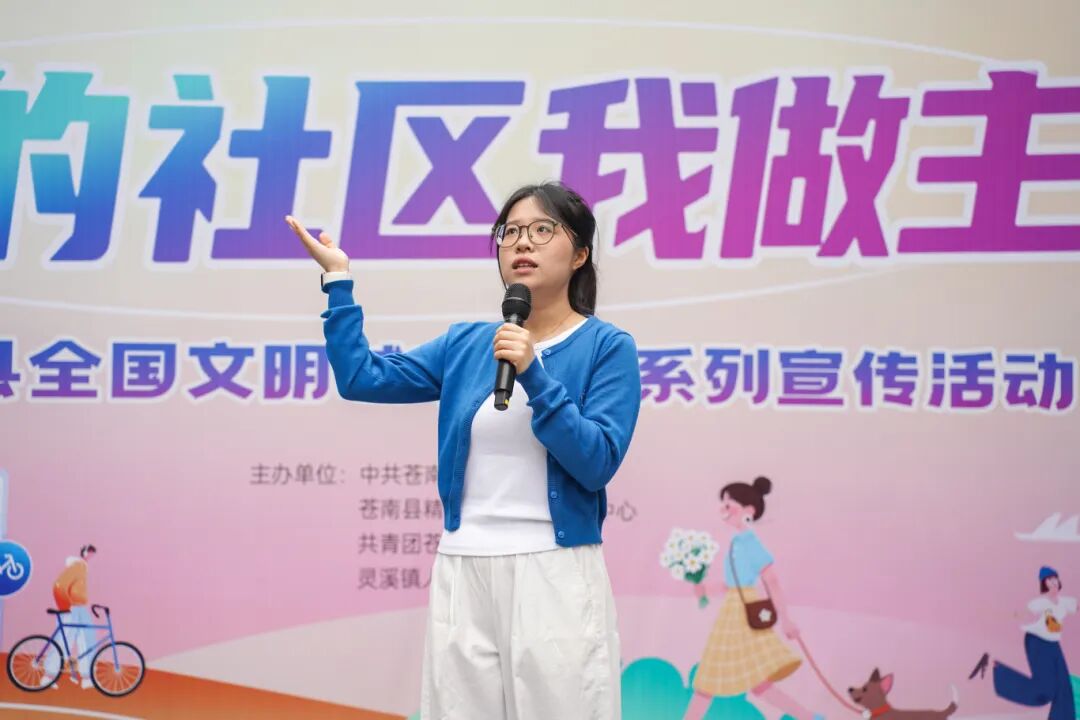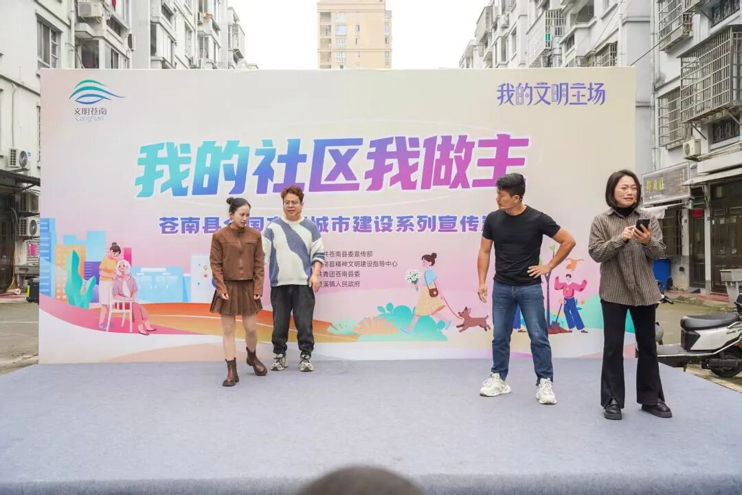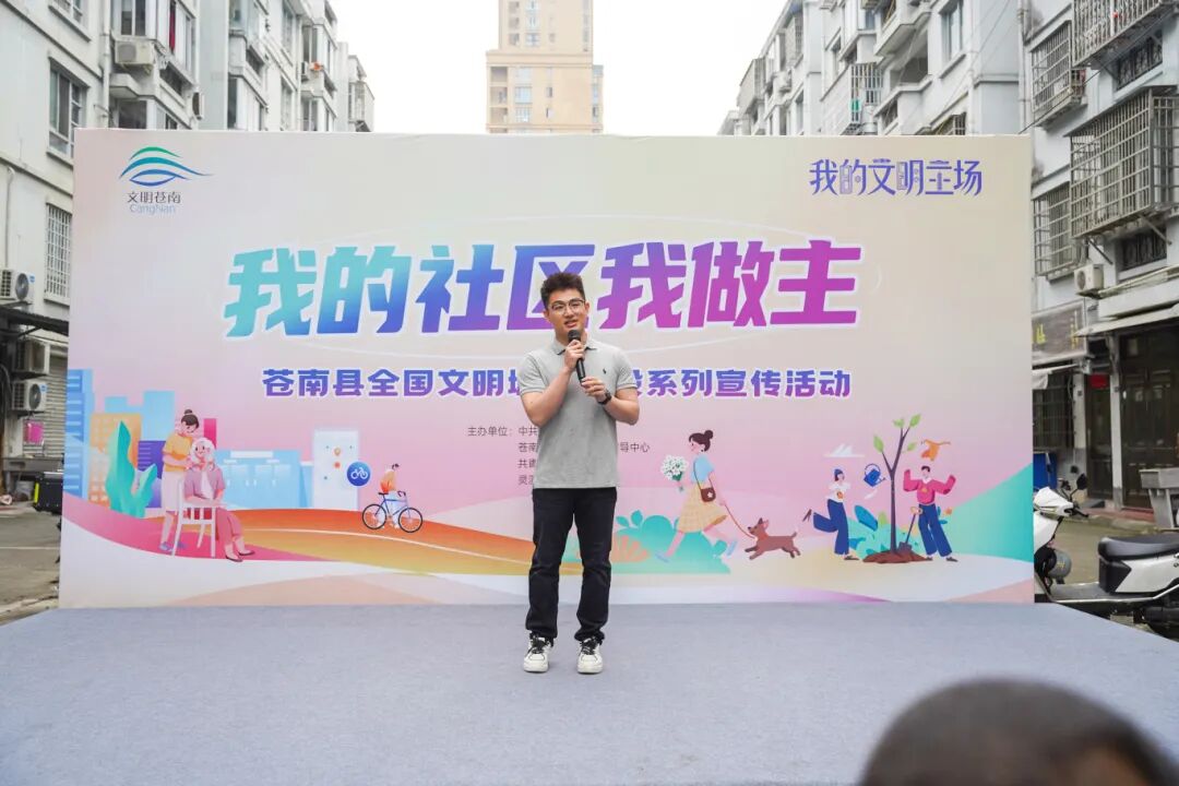 四月春风拂面来,文明之花遍地开。4月12日下午,由县委宣传部、县精神文明建设指导中心、团县委、灵溪镇政府联合主办的“我的文明主场·我的社区我做主”苍南县全国文明城市建设系列宣传活动在灵溪镇横阳小区火热开展。通过“台上+台下”双线联动的创新形式,以群众喜闻乐见的方式传递文明理念,让“人人争做文明使者”的新风尚浸润千家万户。