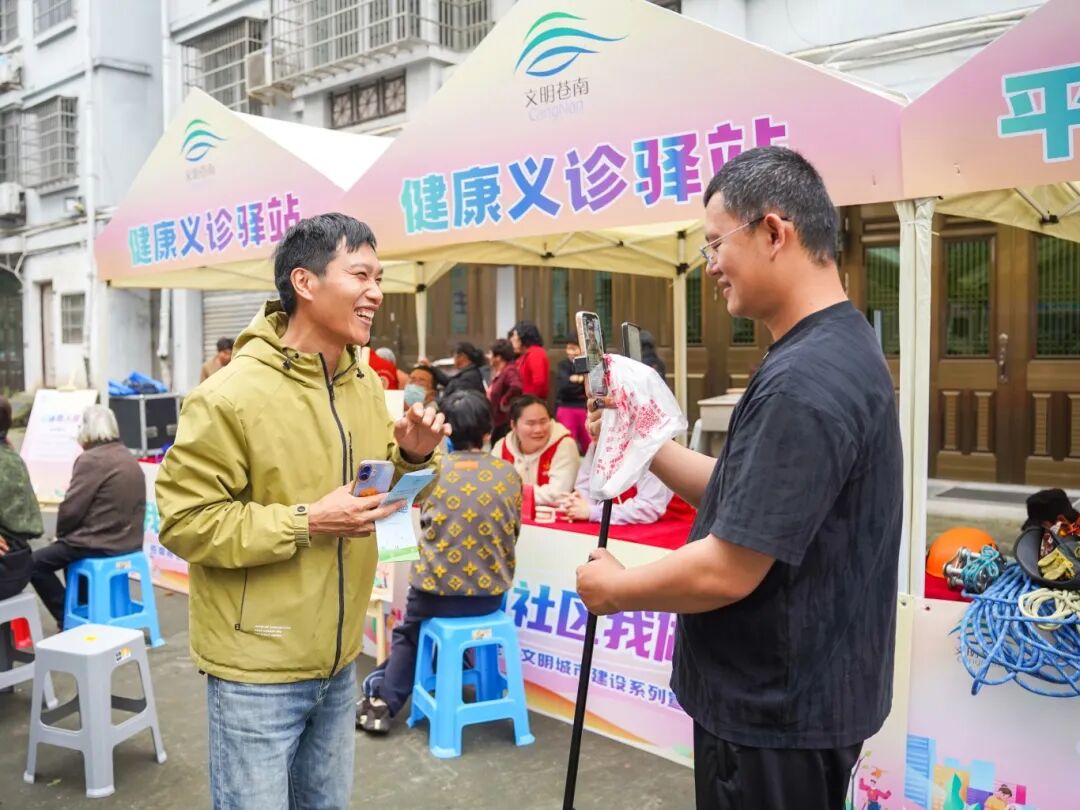 舞台下,"5+1"公益服务矩阵成为另一道亮丽风景。文明理念宣传站里,志愿者们耐心讲解垃圾分类知识;健康义诊驿站排起长队,医护人员为居民提供血压血糖检测、口腔筛查等"一站式"服务;平安守护角变身应急课堂,消防演练与急救教学吸引众多居民驻足学习,让安全教育更具沉浸感;便民暖心服务铺前,周边居民纷纷拿来“罢工”的电器,让志愿者帮忙维修。