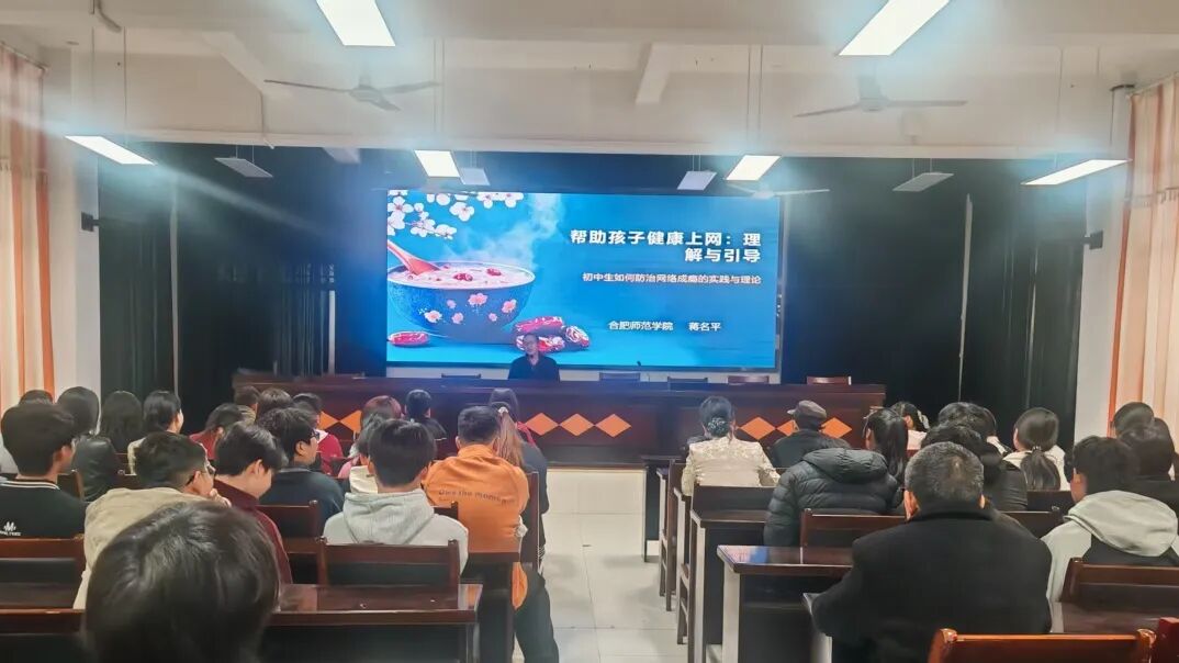 为进一步深化家校社协同育人体系建设,促进未成年人健康成长,帮助家长科学应对初中生网络问题,4月10日上午,合肥市慈善资金支持家庭教育课程在肥西县紫蓬镇烧脉学校举行。活动特邀合肥师范学院蒋名平老师为现场家长带来了一场题为《读懂孩子“网事”,沟通从“心”开始》的专题讲座。