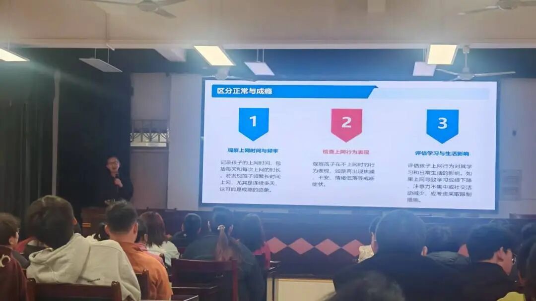 针对家长普遍关心的“玩多久才算上瘾”的疑问,蒋老师结合心理学评估标准,为家长们提供清晰的“自查指南”。他从情绪反应、耐受性、戒断反应及社会功能受损程度等多个维度,教大家如何精准区分正常的网络使用与病态的网络成瘾 。他强调,早期的错误归因和过激的指责,往往会成为孩子越陷越深的推手。