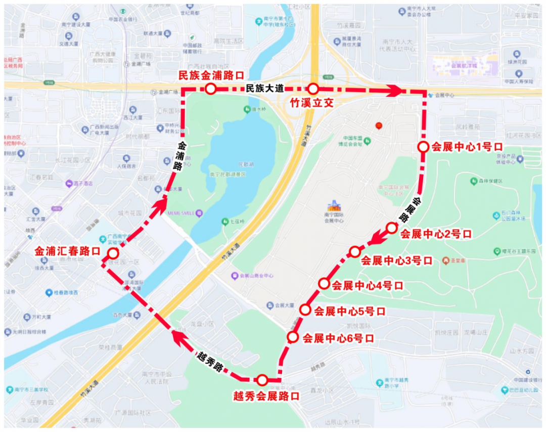 重点保障开幕式主会场(南宁民歌湖)周边市民游客的出行接驳。