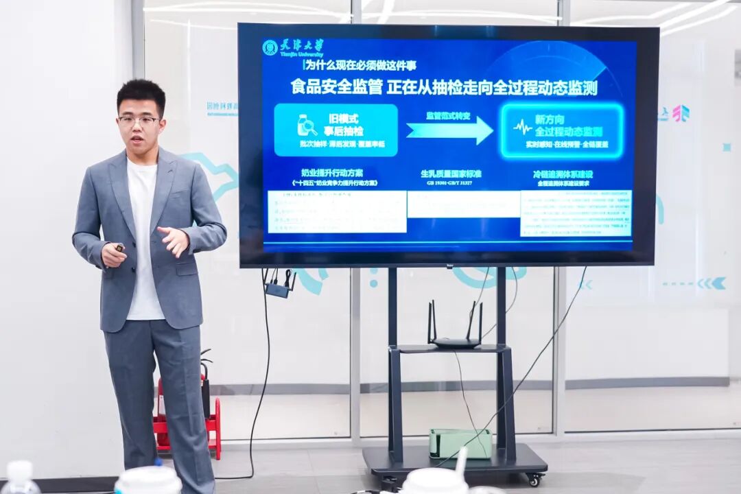 “有光扫过的地方,有害菌的影子就无处躲藏,我们要做牛奶世界里的守护人。”精仪学院清鉴光学团队扎根食品健康赛道。传统检测耗时久,极易导致隐患牛奶流通市场,团队以纯物理光学结合前沿AI技术给牛奶安排秒级CT,实现单细菌级别精准检测,将食品安全品控从事后追回颠覆为出厂前即刻拦截,让品控再提速,把好食安第一关。