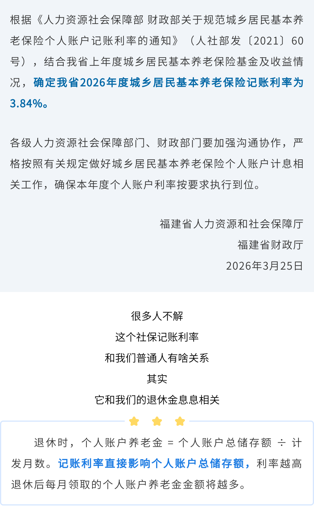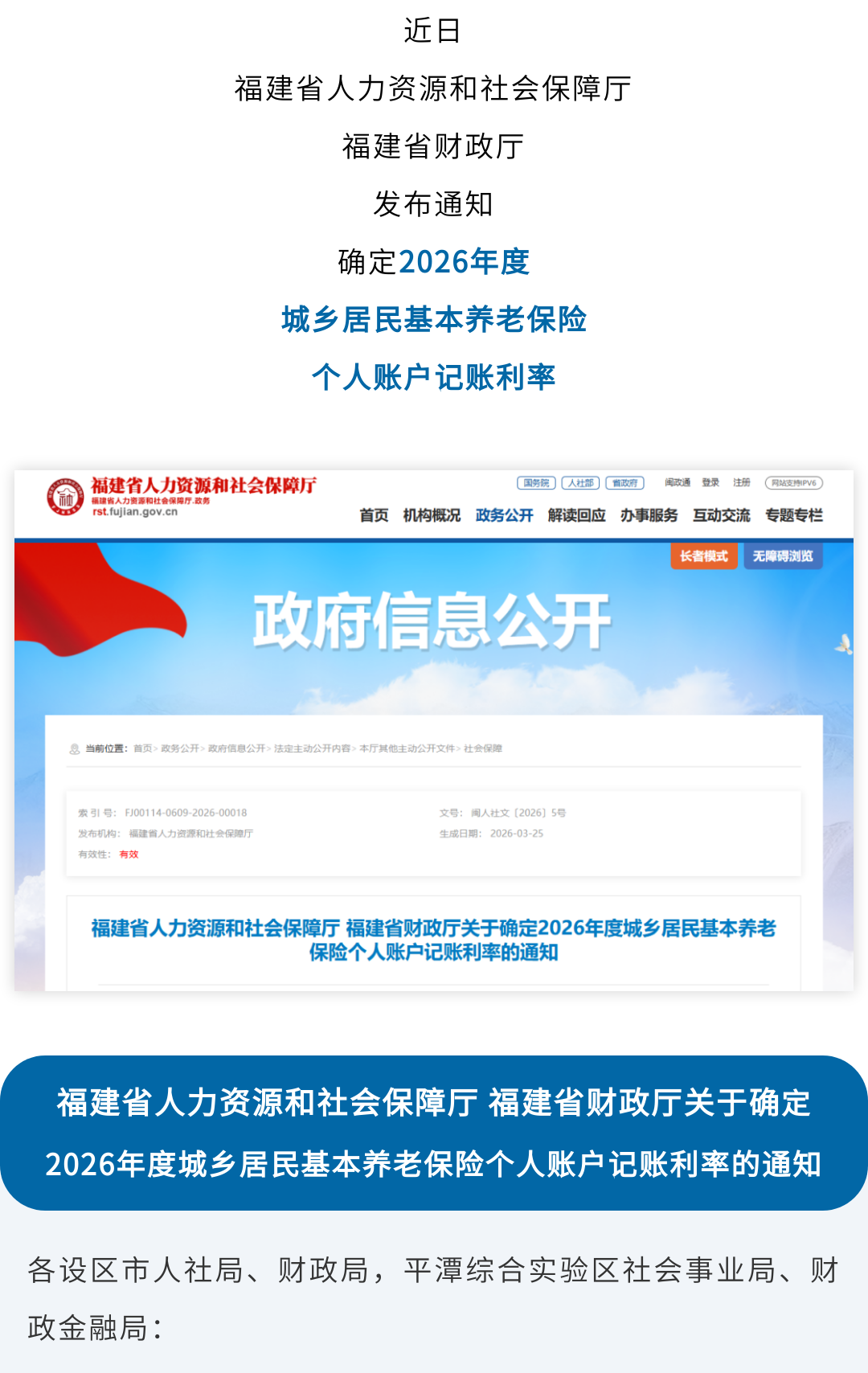 你交城乡居民保了吗?福建公布26年城乡居民基本养老保险记账利率!
