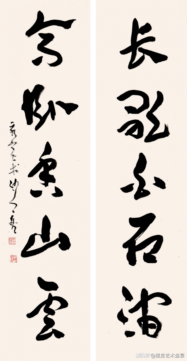 第二是现代性。正如冯博一先生所说,我们已然步入AI时代,艺术创作不必再纠结于创作材料、表现形式的固有束缚。在这一点上,朱永灵先生是真正的艺术勇者,他既拥有深厚扎实的传统书法功底,坚守笔墨本源,又勇于突破创新,不断探索书法创作的多元表达。