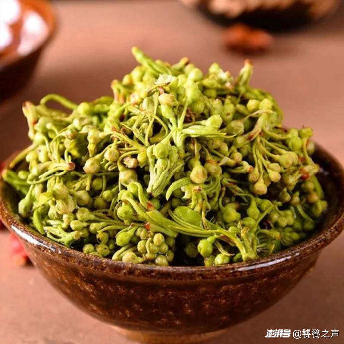 采摘棠梨花要选未开放的花苞,此时苦味最淡,清香最显。新鲜采摘的棠梨花需要焯水去除涩味,之后或炒或拌,都能成为一道佳肴。